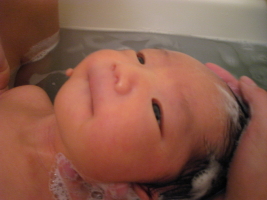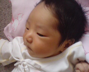 出産時の写真を見て頂ければわかるのですが、キョンタン、頬っぺたにでっかいいぼみたいなのを付けて産まれて来ました。副耳といって、お腹の中で耳の出来る過程の奇形らしいのです。が、問題は見た目だけだという説明を受けたので1歳過ぎてから切除の手術を受けようと思っていたんです!↑新生児、沐浴中☆ところが結構大きかったのと、付いてる場所が場所なので、3ヶ月頃になると、自分でいじる弄るw根元に傷が付いて泣き叫びめっちゃ焦って病院に走ることが頻繁にありました(今考えると血が滲んでただけなのに、先生に出血してるんです~!とか言ってしまって恥ずかしい親だったw)そんなある日朝起きると、ほっぺの副耳が赤黒くなってたんです腐ったんじゃないかと思った私wは朝一で旦那と大学病院の形成外科に見てもらいに行きましたでもどうすることも出来ないので様子を見てもらうしかないと言われ、帰って来ました。夜には赤黒いから真っ黒に進化し、心配でたまりませんでした~結果次の日の朝、寝ぼけてキョンタンを見ると、4ヶ月近くお世話になった副耳さんは自然に取れ、服の襟に付いていました!ww今では付いていた場所に少し跡があるくらいです。何にせよ、良かったなぁ取れたブツは臍の緒の木箱に入れてありますw スニーカーみたいな靴下とミニーちゃん靴下