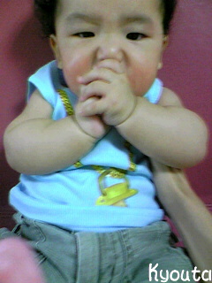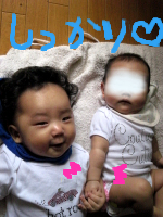 今日はやけにハイテンションなキョンたん。。全然寝てくれませんでしたハイな理由は同い年の女の子と初めて手をつないじゃったから?w でもなぜか泣いちゃいましたへタレね~ 友達が赤ちゃんと遊びに来てくれたんですが、女の子ほ~んと可愛かったなぁっ そのせいか何なのか、友達が帰ってもなお、夜はずーっと大興奮ギャヘェ~!! ニッヘァ~!! ワァ~ とりあえず、こんなにお口が開くなんてお母さん知らなかったょびっくり致しました☆wあとお座りがもう少しで出来そうになって来た~!柄違いですがこのglamajamaのセットアップ☆着せやすくてお気に入りです^^ちょっとセレブ気分しかしキョンタンのサイズはなんと12~18m。。wちょっとちっさめだから!w うう~んキョンタン、最近あんまり乳児に見えないよ~。。。