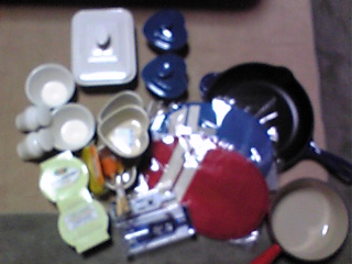 元旦に鳥栖プレミアムアウトレットで購入した福袋2個分です。1万円×2個なかなかお気に入りです。画像がわかりずらいですね白系のラムカン蓋付きのラムカンもそれぞれの袋に1個づつ入り2個にミトンもそれぞれワインオープナーもそれぞれ青い26cmミニスパチュラかわいい~大満足の福袋だけど・・・だけど・・・要らないものが1点調味料入れこんな細い所から私の性格上入れるのは無理っす template-まりもん