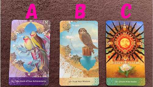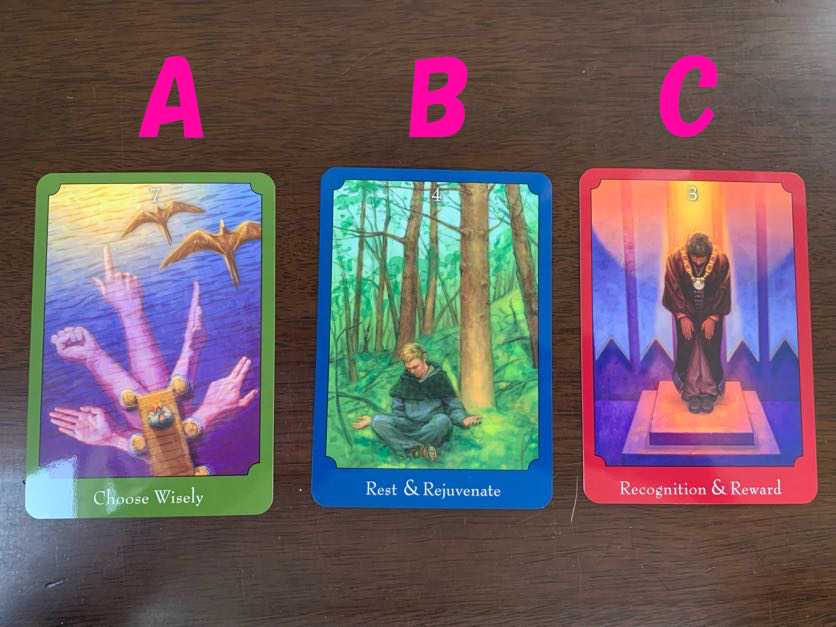 タロットカードの練習をやっていこうと。YouTubeでよくある、三択でやってみよう。仕事運、気になるよね~ってことで「仕事運 過去 現在 未来」「ファインド ユア ライト インスピレーションデッキ」から三択を出しました。下の画像のA・B・Cから選んでください。【専用日本語解説書】 ファインド ユア ライト インスピレーションデッキ ユーエスゲームス オラクルカード 44枚 占い 妖精 人魚 天使 正規品 Find Your Light Inspiration Deck フォーチュンカード タロット オラクル ルノルマンAを選択した人はこちら↓選んだオラクルカード「I am ROYALTY」 ~私は王族~タロットカード過去「12:吊るされた男(逆)」現在「カップのA(逆)」未来「カップの2(正)」あなたのお仕事の過去はとてもつらい日々を過ごしていたのかもしれません。どう頑張ってもうまくいかないのでもうあきらめようとしていた・・・それは現在も続いていて、どう頑張っても満足いかない・・・力が入りすぎてるのかな?しかし、未来にはあなたと息の合うパートナーやプロジェクトとの出会いがあるかもしれません。あなたは生まれながらの特別な存在です。自分を過小評価せず、心に余裕をもつことで難局を切り抜けられるかもしれません。最後にAさんへのメッセージを「龍神カード」に聴いてみました。「6:翠龍」~本来の愛情への目覚め~仕事がつらいのは人間関係が原因かも。まずは自分自身を愛してください。自分を愛せるようになると、周りの人も許せるようになると思います。自分も周りも愛せることで、今までの苦しみから解放される道が見えてくるかもしれません。幸せと豊かさへの扉を開く 龍神カード [ 大杉 日香理 ]Bを選択した人はこちら↓選んだオラクルカード「I feel LOVED」 ~愛されていると感じます~タロットカード過去「6:恋人(逆)」現在「ペンタクルの9(正)」未来「16:塔(逆)」あなたのお仕事の過去は好きなことを仕事にすることが苦痛になっていたかもしれません。やりたいことがいくつもあってどっちつかずになってたり・・・でも現在は軌道に乗って安心しているのかも。未来ではいい状況に慣れすぎてだんだんうまくいかないことが増えてくるかも。気付いた時には何も残らない・・・ということが無いように気を引き締める必要があるかもしれません。いま、うまくいっているのは自分だけの力ではありません。チームや家族の存在が、あなたを突き動かしているのです。常に感謝を忘れないようにしましょう。最後にBさんへのメッセージを「龍神カード」に聴いてみました。「4:天龍」~伸びやかな成長~心が安定している時こそ、新しいことを始めましょう。新しい刺激が今の仕事や生活に新しい風を吹き込み、さらなる成長を促してくれるでしょう。失敗することは無駄ではありません。どんな経験も未来のあなたを助ける力となるのです。幸せと豊かさへの扉を開く 龍神カード [ 大杉 日香理 ]Cを選択した人はこちら↓選んだオラクルカード「I am SEALED」 ~私は封印されています~タロットカード過去「6:恋人(正)」現在「8:力(逆)」未来「ソードの4(逆)」Cさんは過去ではお仕事は順調だったのではないでしょうか。好きな仕事やプロジェクトにかかわれて毎日が楽しかったことでしょう。ただ現在は力を入れすぎて疲れてしまっているのではないでしょうか?このままでは未来では、身体を壊してしまうかもしれません。いくら好きなことでもほどほどにしましょう。仕事とは関係のない趣味を持ったり、ただボーっとしたり、無理やりでも休むようにしましょう。体を壊すと周りにも迷惑をかけてしまいますよ。最後にCさんへのメッセージを「龍神カード」に聴いてみました。「27:姫龍」~信頼できる人との出会い~ストレス解消が仕事仲間との飲み会だけになっていませんか?飲み会を断り、新たな出会いの場に飛び込んでみると、違う目線からの新しい発見があるかもしれません。あなたの人生に潤いをもたらすのは仕事だけではないはずです。人生は一度だけです。まだまだ知らない面白いことを探してみましょう。今からでも本当の親友ができるかもしれませんよ。幸せと豊かさへの扉を開く 龍神カード [ 大杉 日香理 ]仕事で悩みのない人はいないはず・・・仕事は人生の目的ではなく、手段なだけ。”仕事”って”仕える事”?いやだ~もっと無駄なことをして生きたい!【60ページ日本語解説書付き 】タロットカード 日本語解説書付き 初心者 正規品 ポーチ付き タロット ウェイト版 ライダータロット スタンダードタロットカード 78枚 ライダー版 タロット占い 【 アフター・タロット AFTER TAROT 】日本語解説書付き 送料無料