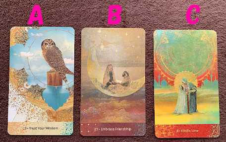 タロットカードの練習をやっていこうと。YouTubeでよくある、三択でやってみよう。スピリチュアル系のリーダーさんが「宇宙さん」「高次元さん」「天使さま」などのメッセージをやってるので真似してやってみようと・・・スピリチュアルの力はありませんが、無心でカードさんに聞いたら、私の力とは関係なく、メッセージはいただけるはず!ということで・・・「宇宙からのメッセージ」「サイキックタロットオラクルカード」から三択を出してみました。下の画像のA・B・Cから選んでください。リーディングは通常のタロットカードを三枚引きで見てみます。オラクルカード 日本語版 占い【 サイキック タロット オラクルカード 2023年改訂版 】 日本語解説書付きAを選択した人はこちら↓選んだオラクルカード「7:Deception & Envy」~偽りとねたみ~タロットカード「カップの女王(逆)」「カップのA(逆)」「カップの5(逆)」カップばっかり・・・しかも全部逆位置・・・オラクルカードも不穏・・・Aさん、泣いてます?恋愛で苦しんでるのかな?お相手にパートナーがいて、妬みで苦しくて、恋愛なんてしないって強がってみて・・・Aさんは本来はすごく優しくて、みんなに愛を分け与えていた人なのかな・・・でも気がついたら愛が暴走してしまってちょっと押し付けになっているのかも・・・いま、すごく苦しい時を過ごしているのかもですね・・・しかし!「カップの5(逆)」は悩みから抜けられる暗示があるので、今の状況を受け入れ、「ま、いっか」と割り切れれば、好転していけるはず!それでは、宇宙さんからのメッセージを「ウィズダム オブ ハーフィズ オラクルカード」に聴いてみました。「2:Protect Your Boundaries」~あなたの境界を守って~Aさんに届いた宇宙さんからのメッセージは「あなたは素晴らしい人です。誰にも侵されること無く、あなたのままでいてください」です。誰かに好かれようと自分を変える必要はありません。あなたのままを愛してくれる人がいるはず。人生をあなたの好きで満たしてください。【専用日本語解説書】 ウィズダム オブ ハーフィズ オラクル デッキ ユーエスゲームス 45枚 占い ハーフェズ 正規品 Wisdom of Hafiz Oracle Deck フォーチュンカード タロット オラクル ルノルマンBを選択した人はこちら↓選んだオラクルカード「2:INTUITION」~直観~タロットカード「カップの騎士(逆)」「ソードの王(正)」「カップの10(逆)」Bさんはお相手や周りの煮え切らない態度にあきれている感じでしょうか?お仕事のリーダーや恋愛でも主導権をとることが多いのでは?Bさんは仕事もできるし、直観力も優れているのかな?周りもそんなBさんに任せっきりで自分で考えない人ばかりかも・・・でも、Bさんの心はなかなか満たされない感じなのかな・・・今の状況がそんなに悪いとは思わないけど、良くもない・・・宇宙さんからのメッセージを「ウィズダム オブ ハーフィズ オラクルカード」に聴いてみました。「44:Rest Deeply」~しっかり休んで~Bさんに届いた宇宙さんからのメッセージは「ぐっすり寝て!」です。ちょっと疲れがたまってませんか?心も体も頭もフル回転で毎日頑張ってるBさん。美味しいもの沢山食べて、ゆっくりお風呂に入って、ふかふかの布団でドロドロに寝てください。寝る前はスマホもあんま見ないでね。頭がすっきりしたら、自分がやるべきこととやらなくていいことの区別がはっきりつくはずです。人に振れることは人に任せましょう。失敗こそが学びになるので他人の心配はやめましょう。【専用日本語解説書】 ウィズダム オブ ハーフィズ オラクル デッキ ユーエスゲームス 45枚 占い ハーフェズ 正規品 Wisdom of Hafiz Oracle Deck フォーチュンカード タロット オラクル ルノルマンCを選択した人はこちら↓選んだオラクルカード「5:Emotional Lose」~喪失感~タロットカード「ワンドのペイジ(逆)」「ソードの6(正)」「ワンドの王(正)」Cさんは・・・何かを失ってつらい状況にあるようですね。情熱が空回り・・・なかなか次にいけない・・・まずは逃げましょう。失った、負けた、振られた・・・つらい経験ですが、みんな何かを失いながら強くなるんです。後悔や反省は、執着を生みます。そこにフォーカスしないでください。「もう知らん」って逃げればいいのです。心が傷つかないようにすれば、また情熱がうまれ、自信も取り戻せるはずです。宇宙さんからのメッセージを「ウィズダム オブ ハーフィズ オラクルカード」に聴いてみました。「18:Play」~あそぼ~Cさんに届いた宇宙さんからのメッセージは「あ~そ~ぼ~~~!」です。こどものころの遊びを思い出してください。身体を思いっきり動かし興奮して、我を忘れるぐらいに遊んでみましょう。本当の自分が見つかるはず。思考しても頭の中に自分はいません。遊びの中で、笑ったり、泣いたり、悔しんだりする感情の中にこそ本当の自分がいるはずです。真の自分に出会えたら、今の悩みがどうでもいいことに気が付くかもしれません。「