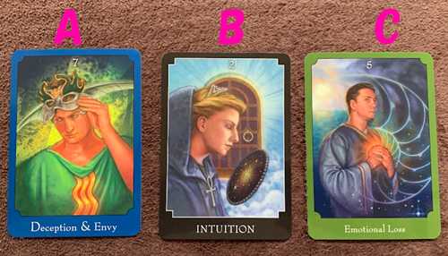 タロットカードの練習をやっていこうと。YouTubeでよくある、三択でやってみよう。最近連絡ないあの人はもう私のこと・・・ということで!「あの人との関係は終わってしまったの?」「サイキックタロットオラクルカード」から三択を出してみました。下の画像のA・B・Cから選んでください。リーディングは通常のタロットカードを三枚引きで見てみます。サイキックタロットオラクルカード 〈新装版〉ジョン・ホランド 日本語版ガイドブック付属 オラクルカードAを選択した人はこちら↓選んだオラクルカード「19:LIGHT」~光~タロットカード「21:世界(逆)」「ペンタクルの3(逆)」「ワンドの2(正)」ワールドが逆位置・・・でもワールドです!もうちょっとでいい感じなんだけど~って感じでしょうか。ペンタクルの3が逆位置なのであんまりコミュニケーションが取れてないのかな?でもワンドの2で世界を片手に考えているので、お相手にいい計画がありそうですね。いま、あなた自身の調子は良く、周りからも注目されていると思いますので、お相手も焦ってやってくるかもしれませんね。この恋はこれからが本番でしょう。最後にAさんへのメッセージを「ファインド ユア ライト インスピレーションデッキ」に聴いてみました。「I am A CHILD」~私は子供です~こどものころの気持ちで、素直に過ごしましょう。純粋に受け入れる心で未体験のものに触れることで心が癒され、あなたの美しさはより一層、輝くでしょう。【専用日本語解説書】 ファインド ユア ライト インスピレーションデッキ ユーエスゲームス オラクルカード 44枚 占い 妖精 人魚 天使 正規品 Find Your Light Inspiration Deck フォーチュンカード タロット オラクル ルノルマンBを選択した人はこちら↓選んだオラクルカード「3:Heartache & Lose」~心の痛みと喪失~タロットカード「ペンタクルの7(逆)」「8:力(逆)」「21:世界(正)」振られてしまったのでしょうか・・・お相手が遠くに行ってしまったのでしょうか・・・今あなたは、だいぶ落ち込んでいるようですね。お相手も同じく落ち込んでいることでしょう。でもこの痛みはきっとあなたを強くすることでしょう。この経験が、あなたにもっといい状況をもたらせることでしょう。いまよりもいい世界があなたを待っていますよ。いったん終わらせて新しい恋に向かうのもいいと思います。今のお相手とも縁があればまた出会うこともあるはずです。落ち込むより一度きりの人生をもっと楽しみましょう。最後にBさんへのメッセージを「ファインド ユア ライト インスピレーションデッキ」に聴いてみました。「I will... SURRENDER 」~私は諦めます~逆境に立ち向かうだけが人生ではありません。ときには流れに身を任せて、なるがままにしてみてください。大天使さまがお守りくださるでしょう。暗闇をひとりで歩き回るのは危険です。もうすぐ夜は明けますよ。【専用日本語解説書】 ファインド ユア ライト インスピレーションデッキ ユーエスゲームス オラクルカード 44枚 占い 妖精 人魚 天使 正規品 Find Your Light Inspiration Deck フォーチュンカード タロット オラクル ルノルマンCを選択した人はこちら↓選んだオラクルカード「6:Moving On」~前進~タロットカード「12:吊るされた男(逆)」「ワンドの7(正)」「ソードの騎士(逆)」あまり順調ではなさそうですね。でもあなたはもう立ち直りかけているのではないでしょうか?以前は敵だと思っていた人々や状況も、あなたの思い込みなだけだったことに気づいているのでは?いったん区切りをつけて前進していってください。ゆっくりですがいい方向に向かい始めています。最後にCさんへのメッセージを「ファインド ユア ライト インスピレーションデッキ」に聴いてみました。「I feel... NURTURED」~私は大切に育てられていると感じます~あなたは大切な存在です。自分自身を大切にしてください。これまで、お相手に合わせすぎてはいませんか?まずは自分を癒しましょう。あなたが自分を大切にすることで周りもあなたを大切にしてくれるでしょう。【専用日本語解説書】 ファインド ユア ライト インスピレーションデッキ ユーエスゲームス オラクルカード 44枚 占い 妖精 人魚 天使 正規品 Find Your Light Inspiration Deck フォーチュンカード タロット オラクル ルノルマンオラクルカード 日本語版 占い【 エンジェルアンサー オラクルカード (ラドリー版)2023年改訂版 】 日本語解説書付きThe Oracle from UNIVERSE ユニバーサルオラクルカード エレマリア オラクルカード