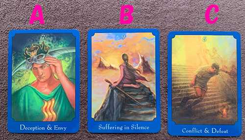 タロットカードの練習をやっていこうと。YouTubeでよくある、三択でやってみよう。占いの定番で前世とか過去世とかあるのでやってみよう!時間の考え方で過去から現在→未来と時間が進んでいるとは限らないみたいなのをよく聞きますが、ということは前世が過去の誰かじゃなくて、未来の誰かかもしれない、もしくは今生きている誰かが自分の前世や来世かもしれないっていうことですよね。ん~~ややこしい~~「前世からの宿命」「サイキックタロットオラクルカード」から三択を出してみました。下の画像のA・B・Cから選んでください。リーディングは通常のタロットカードを三枚引きで見てみます。新装版サイキックタロットオラクルカード 送料無料 タロットカード オラクルカード 占い セルフケア リーディング 美しい 綺麗 癒し ヒーリング 願いが叶う 恋愛 仕事 人生 人間関係 占術 当たる 日本語解説書付 正規品 サイキックタロット サイキックタロットオラクルカードAを選択した人はこちら↓選んだオラクルカード「7:Deception & Envy」~偽りとねたみ~タロットカード「カップの2(正)」「ソードのペイジ(逆)」「ソードの10(正)」Aさんは前世においてとてもつらい思いをしたようです。愛が通じ合ったパートナーと結ばれずに引き離された感じでしょうか。音信不通になり、探したんだけどけっきょく見つからずに、悲しみに暮れていたのかもしれません。そのせいか、今世においてもなかなか実らない恋をしているのかもしれませんね。でもそれは前世の影響で臆病になっているだけかも。空の向こうには夜明けが待っています。今は夜明け前の状態、明けない夜はありません。Aさんへのメッセージを「ファインド ユア ライト インスピレーションデッキ」に聴いてみました。「I feel LOST」~私は迷いを感じます~いま、あなたの心は深い海の底のような暗い気持ちかもしれません。でも、深海にも輝くほどの生命と奇跡があります。下ばかり見ずに、目をあけて光を探してください。あなたの回りに無数の光があることに気づくでしょう。光がありすぎて目移りしてしまうかも!【専用日本語解説書】 ファインド ユア ライト インスピレーションデッキ ユーエスゲームス オラクルカード 44枚 占い 妖精 人魚 天使 正規品 Find Your Light Inspiration Deck フォーチュンカード タロット オラクル ルノルマンBを選択した人はこちら↓選んだオラクルカード「9:Suffering in Silence」~無言の苦しみ~タロットカード「ワンドの7(正)」「ワンドのペイジ(正)」「ペンタクルの2(逆)」Bさんは前世においてつらい裏切りにあったのかもしれません。それなりの地位があり、情熱もあったけど、成功の一歩手前で、部下や後輩からの裏切りがあったのかもしれません。そのせいか、今世でも周りを信用できず、一人で頑張っているのかも。でも一人でやれることの限界で、ふらふら状態・・・。誰にも相談もできず・・・。もう少し目線を遠くにしたほうがいいのかも。全体における自分の役割、みんなの役割。俯瞰で見れるようになればやるべきこととやらなくていいことの区別がはっきりするかもしれません。最後にBさんへのメッセージを「ファインド ユア ライト インスピレーションデッキ」に聴いてみました。「I will ENCOURAGE」~私は励まします~あなたの仕事はあなただけのものでしょうか?任せていないだけで、本当は他の誰かでもできるんじゃないででしょうか。あなたの本当の役割は、励まし、導くことかもしれません。できることをできる私がやる・・・出来ない人が失敗しながらやる・・・人に任せることで新しいやり方も見つかるかもしれません。【専用日本語解説書】 ファインド ユア ライト インスピレーションデッキ ユーエスゲームス オラクルカード 44枚 占い 妖精 人魚 天使 正規品 Find Your Light Inspiration Deck フォーチュンカード タロット オラクル ルノルマンCを選択した人はこちら↓選んだオラクルカード「5:Conflict & Defeat」~争いと敗北~タロットカード「ペンタクルのペイジ(正)」「ソードの8(正)」「ソードの3(正)」Cさんは前世において真面目に仕事などを頑張っていたんでしょうね。ただ、自由が利かず思ったことができなかったのかもしれません。やる気はあるのに何回も挫折を経験し、心が疲弊してしまった・・・。そのためか今世においてもそのトラウマを引きずっているのかもしれません。新しいことを始めようというとき、怖くなったり、自分なんかがうまくいくわけない・・・と、やる前からネガティブになったりしてませんか?でもその心のドキドキは不安ではなく、ワクワクかもしれませんよ。こどものころ、大きな滑り台やブランコが怖かったことはありませんか?でも慣れると楽しい!怖がらずにまずはチャレンジしてみてはどうでしょう?最後にCさんへのメッセージを「ファインド ユア ライト インスピレーションデッキ」に聴いてみました。「I will WORSHIP」~私は崇拝します~あなたの心にある不安は闇ではなく、光の