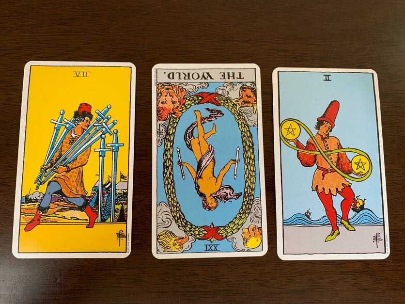 リーディングは通常のタロットカードを三枚引きで見てみます。