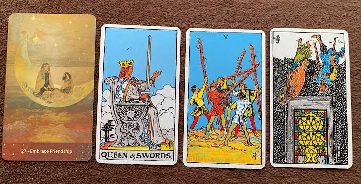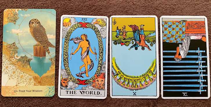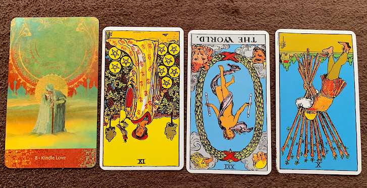 リーディングは通常のタロットカードを三枚引きで見てみます。