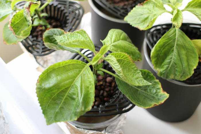 初めての水耕栽培の大葉育成中。しばらく葉は綺麗な緑色だったのですが、葉の端から枯れたように茶色くなってきています。生成AIで聞いてみると、栄養液の濃度が濃すぎる、根腐れなどが指摘されました。大葉の成長も停滞しているように見えます。栄養液の入った水は週1回交換なのですが、期間が長いのかな。栄養分の濃度が濃すぎる点は、自覚があるので、培養液交換時に、カルキ抜きした水を多めに入れて、栄養分の割合を少なくするよう、対策。これで様子見です。水耕栽培の大葉、復活してくれると良いのですが。大葉の葉が端から茶色くなる原因水耕栽培で大葉(シソ)の葉が端から枯れたように茶色くなる原因はいくつか考えられます。主な原因は以下の通りです。1. 栄養不足:水耕栽培では栄養液が植物の成長を支えますが、窒素やカリウムなどの栄養素が不足すると葉の縁が茶色く変色することがあります。2. 水質の問題:水道水の塩素濃度が高い、またはpHが適切でない(大葉はpH5.5~6.5が最適)場合、根がストレスを受け、葉が枯れることがあります。3. 光量過多または不足:直射日光や強すぎる人工光が当たると葉焼けを起こし、逆に光が足りないと成長が阻害され、葉が変色します。4. 根腐れ:水が汚れている、または酸素供給が不足すると根が腐り、葉に栄養が行かなくなり茶色くなります。5. 病害虫:水耕栽培では少ないものの、菌やカビが原因で葉が変色する場合もあります。対策方法1. 栄養液の管理:栄養液の濃度をチェックし、EC値(電気伝導度)が1.0~1.5 mS/cmになるよう調整します。2~3週間に一度、栄養液を新鮮なものに交換しましょう。2. 水質の調整:水道水を使用する場合は、1日放置して塩素を飛ばすか、浄水を使用します。pHメーターで水のpHを測定し、必要ならpH調整剤で5.5~6.5に保ちます。3. 光量の最適化:直射日光を避け、LED栽培ライトを使用する場合は1日12~16時間、葉から20~30cm離して照射します。光量が強すぎる場合は遮光ネットを使用。4. 根腐れ防止:エアポンプで酸素を供給し、水温を20~25℃に保ちます。根が茶色や黒ずんでいる場合は、腐った部分を切り取り、清潔な水と容器に交換します。5. 病害虫対策:葉に異常が見られたら、変色した部分を早めに切り取り、容器やスポンジを清潔に保ちます。カビ防止のため、風通しを良くし、湿度を50~60%に保つと効果的です。追加の注意点定期的に葉や根の状態を観察し、異常が見られたらすぐに対処することが重要です。特に水耕栽培は環境変化に敏感なので、温度や湿度の急激な変化を避け、安定した環境を維持しましょう。枯れた葉は早めに取り除き、株全体への負担を減らします。これらの対策で大葉の健康な成長をサポートできます。北海道札幌市から観光地や生活をでは、普段の生活を記録として残しています。令和7年07月 / 令和7年06月 / 令和7年5月 / 令和7年4月 / 令和7年3月 / 令和7年2月 / 令和7年1月 / 令和6年12月 / 令和6年11月 / 令和6年10月 / 令和6年9月 / 令和6年8月 / 令和6年8月 / 令和6年7月 / 令和6年6月 / 令和6年5月 / 令和6年4月 / 令和6年3月 / 令和6年1月 / 令和5年12月