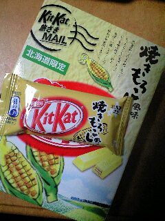 北海道限定の「 ネスレ キットカット 旅さきメール 焼きもろこし風味 」を購入しました。