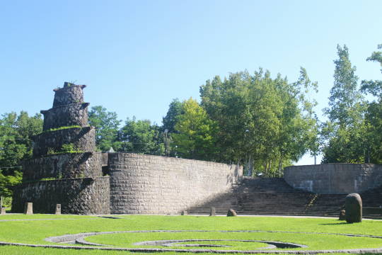 展望テラスやテニスコートなどが設けられた自然豊かな市民の憩いの場 “北ブロック” と、切り立った岩肌が露出した採石場跡を生かした芸術的な景観の “南ブロック” からなる、「ふるさと文化百選」にも選ばれた大自然とアートを融合した公園。