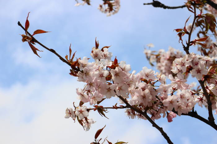 桜を見るためです。サクラの満開は終わり、散り始めて、さくらの花びらが舞っている樹もありました。