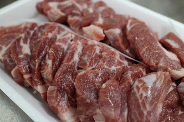 食べるのは、生ラム肩ロース。いつも厚切りにしてもらってます。食べ応え重視 (^.^)