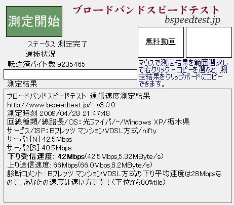 ネットオークションで買ったWindowsXPのマシンだが、古いWindows 2000 のマシンより通信速度が遅いという問題が解決した。何のことはない。通信速度の違いは、ウィルス駆除ソフトの違いだった。 普通は、上りの通信速度よりも下りの通信速度の方が速いはずなのに、上りが25Mbpsで下りが5Mbpsと逆転していたので、どうもおかしいと思っていたのだ。 使っていたのはAVGのフリーウェア版だったのだが、多分これのどれかの設定を変更すると通信速度も向上するのだろうと思うが、面倒なのでWindows 2000のマシンにインストールされているKingsoftのInternet Security に変更してみたら劇的に通信速度が向上した。 なるほどインターネットの通信速度はMTU値やRwin値の設定変更だけじゃなくて、ウィルス駆除ソフト等の選択にも係わり合いがあるということである。