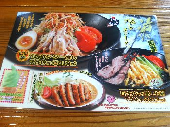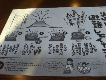 久し振りに夕方、宇都宮に用事があったので、滝谷町にある「石焼らーめん火山」で夕食を取ることにした。昔、この近所のソフトウェアハウスで仕事をしていたとき、仕事仲間といっしょにここでランチを食べたことがあったが、それ以来である。 何しろここのラーメンはかなりインパクトがある。熱々に焼いたどんぶりに麺や具を載せて、客の見ている前でスープを注ぐ。すると一気に沸騰してどんぶりの中はとても手のつけられない状態になるのである。勿論どんぶりの底の方の麺は焦げて香ばしくなるし、下手をすると舌や口の中も火傷をしかねないほど、スープも熱々である。 そんな石焼らーめん火山に夏限定のメニューが出た。夏野菜の石焼らーめんである。お店のお勧めだと店員が言うので、自分はそれを注文。妻はつけ麺の醤油味を注文した。程なくして店員が運んできたのは、一枚の大きな紙である。 この紙は何するものぞといえば、要するに石焼らーめんの初心者に食べ方をレクチャーしてくれている解説書なわけである。それと店員がスープを注ぐときに、はねたりして火傷をしないようにするための盾の役目もするのである。程なくして運ばれてきたのが下の写真である。 夏野菜石焼らーめんには、凡そらーめんの具とはかけ離れたカボチャ、トマト、ブロッコリーが入った塩らーめんである。その他キャベツ、モヤシ、豚肉なども入っている。久し振りに石焼らーめんを頂いたが、やっぱり美味しい。ただ上記の夏野菜が味を引き立てているかといえば?である。平らげた後、普通は小ご飯が付いて、スープの中に入れて雑炊風にするのだが、最近は小食なので、小ご飯の代わりに杏仁豆腐を頂いたので、妻にそのまま差し出した。妻曰く、手作り感のあるなかなか美味しい杏仁豆腐だそうである。 妻の注文したつけ麺醤油味だが、とにかく麺がうどんのように太い。そしてつけ汁のスープがこってりしたコクのある味でなかなか美味しい。さすがに量が多くて、小食の妻に完食は無理なので自分も手伝って食べたが、それでも食べきれなかった。 妻もつけ麺のスープと杏仁豆腐の旨さに味をしめて、今度は割引クーポン券を使って食べに来ようと言うほどである。ちなみに石焼らーめん火山はチャイニーズダイニングの雅修殿グループである。■石焼らーめん火山の公式サイト