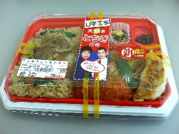 唐突ですが、本日から那須塩原市にある経営コンサルタントの某総合研究所に籍を置くことになりました。一週間に2~3日程度の出社ということになりそうです。それ以外の日は、自宅でSOHOというわけです。 本日は初出勤ですが、お弁当を忘れたので近所のセブンイレブンで購入して、社内で頂きました。U字工事とセブンイレブンのコラボで最近売り出した「大好き栃木弁当」です。もちろん地域限定で、他県では購入出来ません。 栃木県産の食材で全部占められていると思いきや、群馬のこんにゃく、茨城のレンコンも使っていると、U字工事の益子卓郎氏のオフィシャルブログで明かしています。中身は、とちぎ和牛の牛めし、那須高原豚のとんかつトマトソース仕立て、那須高原豚の焼餃子、日光名産のたまり漬け、ポテト入りソース焼きそば、こんにゃくと蓮根の炒め物。 お味の方は、550円と少々お高いだけあってか、一つ一つがけっこう美味しい。栃木県人は、一度お試しあれ。