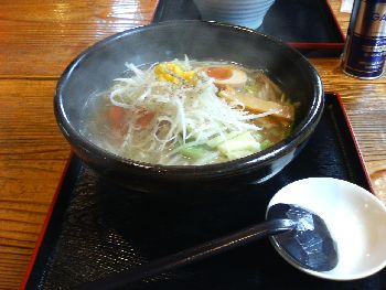 この間、無性にラーメンが食べたくなって近所のラーメン屋の「ちゃあしゅう屋」へ行って来た。この店は2~3ヶ月に1度位の割合で利用するのだが、来る度にメニューが少しずつ違っている。去年の夏に来たときは、冷しかつカレーという如何にもインパクトのある冷し中華を食べたが、今回注文したのは、自分が塩タン麺で、妻が白しょうゆ麺と、少々大人しいと言うかまともなメニューである。注文してほどなく運ばれてきたのがしたの写真の通りである。 塩タン麺の方は、モヤシ、キャベツ、人参、葱、コーン等の野菜がタップリ入っていて、あっさりさっぱりな塩味で、中細麺に良くスープが絡んで美味しい。白しょうゆ麺の方は、白しょうゆ麺の「白」が気になるところなのだが、どうやら薄口醤油をつかっているのと、妻の嫌いな豚背油が入っているところが「白」らしい。妻はスープのサッパリ感と麺の喉越しは気に入っていたが、この豚の背油だけは避けて食べていた。まあ豚肉が嫌いな彼女でも、叉焼と豚背油を除けば食べられるラーメンではある。 今回は、味そのものは整っており、なかなか美味しかったが、若干インパクトに欠けていた。次回の来店時には、ちょっと変わったメニューを期待したい。■ちゃあしゅう屋三世さくら店の場所