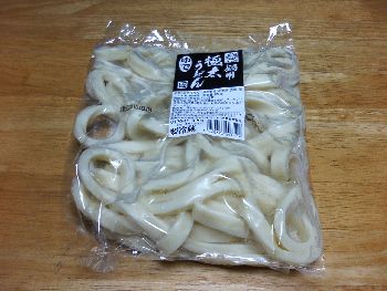 この間、会社の取引先の「大西製麺」にうちの社長が訪問した際、試供品を頂いてきたのを、たまたま居た社員に配られた。焼そばとか乾麺とかがあったようだが、自分が貰ったのは上の写真の通り、「極太うどん」の生麺だった。会社の冷蔵庫に置きっぱなしにしておいたら、賞味期限切れ間近となったので自宅に持ち帰って自分で調理して食べてみた。 先ずは、里芋、人参、長葱、薩摩揚げなどを入れて二人前分のけんちん汁を作ったところまではよかった。その後、この極太うどんを湯がきもせずに煮込みうどんのつもりで、入れたのが失敗だった。このうどん、想像以上に汁を吸ってしまって汁がなくなってしまったのだ。なるほどこれだけ極太だと、水気を吸うのも半端じゃないと気が付いたというわけである。 この極太うどんの味だが、うどんというよりはまるでほうとうか、すいとん汁を食べているような感じなのだが、なかなか美味しかった。もし次回、このうどんを使うことがあれば鍋焼きうどんでも作ってみようか。実家がそば屋だったので、このあたりの料理は手馴れたものである。