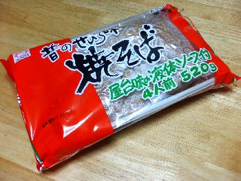 この間、会社の仕事で県内産の食品のモニタリングをすることになり、予めお願いしていたモニターさんに「昔のせいろ味焼そば(大西製麺:大田原市)」と「白あわび茸(関谷きのこ園:矢板市)」を詰めてクール宅急便で送った。 栃木県大田原市にある大西製麺のこの焼きそばは、県北では比較的人気があってスーパーマーケットなどによく置いてあるようなので、試しに自分も調理して食べてみることにした。外側のパッケージはこんな感じである。 中は、4食入りとあったので1食×4袋かと思ったら2食×2袋であった。ソースも2食分が2袋付いてくる。麺の色がけっこう黒い。 作り方はいたって普通の焼そばと同じである。油をひいたフライパンで野菜を炒め、油を少々足して麺を入れ、麺を解すために水を入れ、ソースを入れれば出来上がりである。今回は、キャベツ、玉葱、人参、ピーマンなどを入れてみた。下の写真が出来上がりである。 普通の焼そばより太麺で、その食感がなかなか良いので美味しく感じるのだろうか。液体ソースもよく麺に絡んでいた。普段余り焼そばを美味しいとは言わない妻が、珍しく「この焼そば美味しいねぇ」を連発していたので、なるほど自分が調理しても美味しかったのだから、県北の方でちょっとした人気になっているのもうなずける。量的には成人男性にとってはこの量は1人前という感じもしなくはないが、我が家は妻も自分も小食だし、この焼そばを肴にお酒を飲んだので、二人前としてはこれで十分な量であったと思う。 とりあえずあと2食分残っているので、来週もう一回夕食に焼そばが登場するだろう。■大西製麺の場所