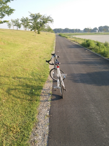土日は野暮用で忙しくて自転車乗れなかったんで今朝、朝ポタしてきました。堤防沿いの上の道のほうが見晴らしが良くて気持ちいいんッスが、最近舗装された下の道のほうが走り易いんで今日はこちらを選択。最近晴れの日が多くて、今日もポタ日和ッスよ。