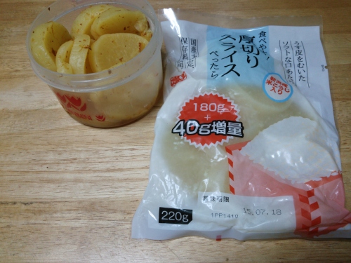 この間イオン・ビッグエクストラさくら店に食料の買い出しに行った折に、国産の大根を使っていて、なおかつ安かったので購入した沢庵が分厚くて笑えた。カツオ味とべったら漬けの2種類なんだけど、かつお味の方は袋から取り出してタッパに入れた図ッス。 直径5cmぐらいで、厚さは8mmぐらいッスかねぇ。味はお勧めしたいほどに美味しいッス。塩分摂りすぎになりそうなんで、一度の食事に沢庵1枚で十分ッスよ。当分食卓に載り続けそうッス。 製造元は新潟県の会社で「株式会社 益子」って書いてありますね。ここの商品ッスね。