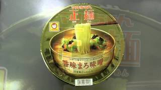 袋麺の味に定評があるマルちゃん正麺に最近カップ麺が出たので、とりあえず香味まろ味噌の方を食べてみた。フタを開けると液体スープとフリーズドライのかやく、そして麺はノンフライ麺のやや幅広の太麺のようです。 お湯を注いでなんと5分間!やたらに待たせます。このあたりはまだ日清食品の技術に及ばないところなんでしょうか。お決まりですが、液体スープはフタに載せて温めておきます。 出来上がりはこんな感じ。キクラゲ、キャベツ、ニンジンッスかねぇ。ちょっと貧相に見えるけどかやくは頑張った方なんでしょうか。出来れば味卵とかチャーシューとかを付けたいところですが、200円ならこんなもんでしょう。 肝心の味ですが、さすがに美味いっっすよ。香味と云うだけあって味噌の香りも食欲を引き立てるし、麺の食感もモチモチして喉越しがよく、あっという間に完食でした。醤油味も有るようなので、皆さんもお試しあれ。4箱まで1個口 マルちゃん正麺 カップ 香味まろ味噌×12個[ケース販売]価格:2,319円(税込、送料別)