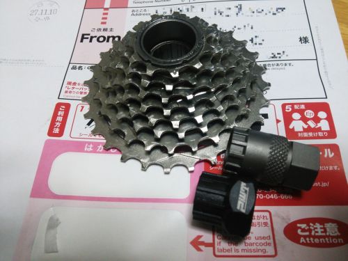 この間ヤフオクで落札したSHIMANO製 MF-G50-7互換のDNP製のスプロケットが届いた。そう言えばこれ8Sだったんだよね。一応オークション出品の商品説明にも8Sとは書いてあったので分かってはいたんですけどね。自分のミニベロCDR214って7Sなんだよね。シフトレバーはフリクションタイプだから問題ないとして、フレームのステー等に干渉しないかどうか不安。場合によってシャフトにスペーサーを咀ませるとか工夫が必要かも。 まあ上位機種のCDR216は8Sなので、多分大丈夫だろうという腹積もり落札したんですよね。今度の休みの日にでも試してみよう。ダメならオークションに出品しちゃえ! ちなみにこのスプロケットを取り外す専用工具が2つ写ってますけど、黒いほうがボスフリー用で、もう片方がカセットスプロケット用です。よく似てるでしょう?同じSHIMANO製スプロケットの工具なんだから同じに作れよって言いたいよね。■ボスフリースプロケット用TL-FW30互換 ボスフリースプロケット抜きツール・ボス抜き W131価格:500円(税込、送料別)■カセットスプロケット用フリーホイールリムーバー IceToolz 09C3 シルバー/5,400円以上で送料無料 フリーホイールリム...価格:818円(税込、送料別)ギザ SC-208A Sprocket RemoverGIZA GIZ 189スプロケットリムーバー価格:691円(税込、送料別)