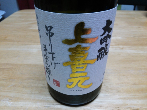 お正月に妻の実家に行った折、山形に住む義兄に頂いた酒田酒造の「上喜元 吊り下げ斗びん採り」。ずっと冷蔵庫に寝かせてたんスけど、今日は、常夜鍋とともに頂きました。美味すぎてすぐに無くなってしまうので1合飲んで止めました。超美味いです。吊り下げというのはもろみを酒袋に入れて滴り落ちるのを瓶詰めした、大変時間と手間のかかる希少なお酒で、地元の方でもなかなか口にできないお酒だと訊いてます。 口の中に広がる芳醇な香りとフルーティな旨みに暫し至福の喜びを感じながら頂きました。日本酒が嫌いな人でも虜にするような魅力があると思います。佐藤正一氏の技が冴える!上喜元 純米吟醸 山田錦 1.8L価格:3,402円(税込、送料別)