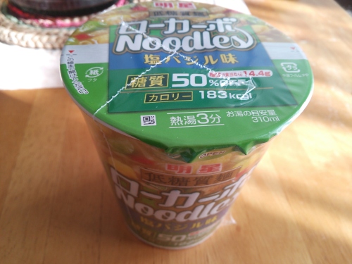 この3連休は自宅で缶詰になってお仕事してました。外に出たのは食料品の買い出しをした日曜日の午前中ぐらい。そういえばその買い出しのときに変なカップ麺を試しに買ってきたんスよね。明星の「低糖質麺 ローカーボNoodles 塩バジル味」。ランチも用意するの面倒くさくなって、朝ご飯に炊いた炊き込みご飯のおにぎりとコレで済ませました。日清食品にも「カップヌードルライト」って言うローカロリーなカップ麺がありましたけど、それよりカロリーは少ないッスねぇ。味はバジル風味で悪くないですが、麺は低糖質麺だからやっぱりイマイチかなぁ。カップヌードルライトのヒラヒラのたよりない麺よりはマシですけどねぇ。 おにぎり1個とこのカップ麺だけでは到底腹持ち悪くて、夕飯の少し前に冷凍のたい焼きをレンジでチンして頂いたすなおらぼでした。明星 低糖質麺 ローカーボNoodles 塩バジル味 125円×12個入り 1500円【 カッ…価格:1,620円(税込、送料別)