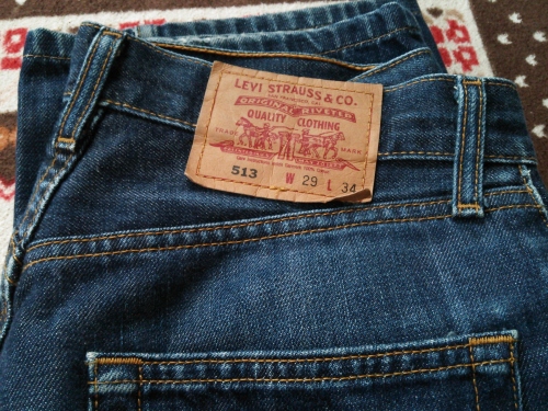 昨日、リサイクルショップの「オフハウス」でジーンズのお買い物。最初、エドウィンの28インチのジーンズを手にとってフィッティングルームで着てみたらちょっとお腹がキツイ。で、29インチのリーバイスを選んだんだが、面倒になってフィッティングしないで、そのままレジに持って行ってしまったんスよ。お値段は500円(税別)! 持ち帰って家で着てみたらレングスがピッタリ。L34って書いてあったんだが、34インチも有るわけないので、多分前のユーザーが裾を詰め過ぎて格好悪かったんで、ほとんど着ないでリサイクルに出しちゃったってぇ感じでしょうか。余り使用感が無いんですよねぇ。 古着は余り抵抗がないし、ましてやジーンズは古着のほうが味があってイイと思うんで、最近は新品でジーンズを買わなくなっちゃいましたねぇ。ちなみに今履いているジーンズはリーバイス501なんだが、楽天オークションで100円で落札して500円の送料が掛った奴ですね。