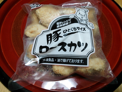 この前の日曜日にイオンで買い物した時、惣菜コーナーのローストンカツが298円だったので、何か代わるものないかなぁと冷凍食品コーナーで見つけたひと口サイズのロース豚カツ。税込み266円のところ、ザ・ビッグデーだったのでここから5%オフの252円。 で、本日の夕飯に卵でとじてカツ煮にしたのが上の写真。ちょっと煮過ぎて失敗したんだが、まあまあ頂けます。但し一つ一つの大きさが違うので一枚のロース豚カツのように綺麗にはいかないッスねぇ。もちろん普通にレンジで温めても頂けます。 ちなみに楽天市場には売ってないッスねぇ。Yahooショッピングにはあるけど自分が購入した値段よりかなり高いッスよ。しかも送料別で冷蔵便だからネットで購入する意味ないッスねぇ。