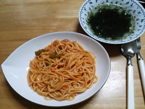 今日のランチはナポリタンとワカメスープ。実は冷凍のパスタなんスけど、コスパ高いんスよ。 上の画像をクリックするとトップバリュのサイトに飛ぶんだが、この商品のお値段が148円。でもこの間、イオン・ビッグエクストラで購入した時は137円だったなぁ。ってコンビニで買うちょっとしたカップ麺より安いし、大盛なんでけっこう腹持ちが良いんスよ。 ちなみにワカメスープは、ローソンセレクトの商品で税込307円。一食当り30円なので、ナポリタンと合わせて200円しないランチッスねぇ。