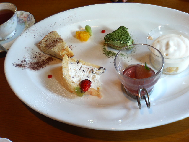 この日頂いたのは、例によって妻がデザート五種盛りセット(980円)、自分が三種盛りセット(850円)である。どちらもコーヒーか紅茶がついてこのお値段なのは、やはり破格の値段だと思う。昔を思えば、こんな贅沢が出来るのは夢のような話である。