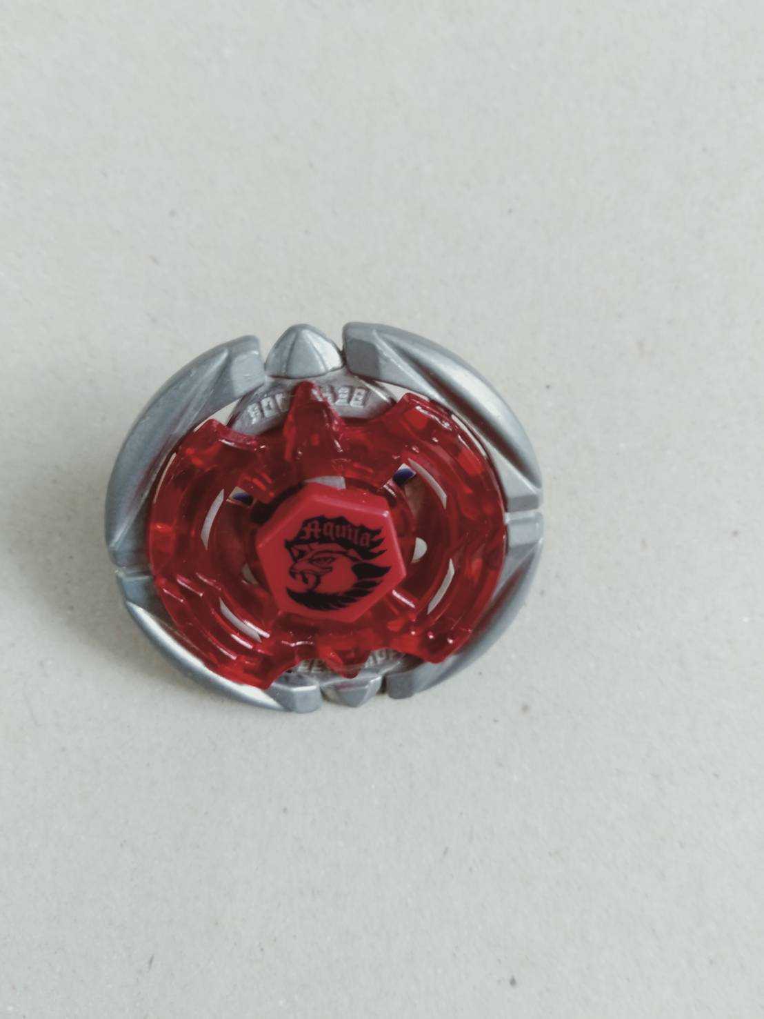 持っているベイの紹介です.フレイムアクイラです.アースアクイラに比べると少しだけ,攻撃に重点を置いたパーツの組み合わせになっています.