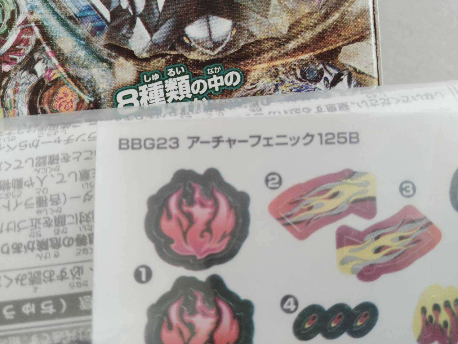 持っているベイの紹介です.ランダムブースターのアーチャーフェニックです.