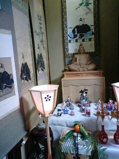 実家の天神様。これを見ると正月だなぁーと思います。中央のが甥ッ子のもので兄 父 祖父・・・・先祖代々のものが飾ってあります。これは幕末の頃に教育に熱心であった福井藩藩主が天神画を飾るよう推奨し、それを富山の薬売りが広めたらしいです。長男が誕生すると 母親の実家から嫁ぎ先に天神様を贈ることになっている。甥っ子の井波彫刻のこれは 軽四1台買える値段らしいですぅその実家ではというと・・・・・Wiiをする気満々で「マイリモコン」を持って行った長女と次女。ところが実家では もうWiiブームが去っていて「遊ぼう」と言えず 「マイリモコン」は出せずじまい。で結局 2日は長女は従兄とipod や 同級生の従姉とビーチボール次女は ひたすら 「ドラえもん」の漫画を読み三女は サンタさんにもらったレジスターで 黙々とワタシは ウノアタックで小学生の子どもたちと盛り上がって遊んでいた。これ アタックボタンというのがあるのでなかなかあがれず普通のウノ以上に盛り上がるのです。甥や姪からはおばちゃん ではなく名前で呼ばれることが多くそのことが童心にかえって かなりヒートアップしまったワタシ。そのあと兄の「おもちゃ」ipod で フェイスシフトをして遊ぶ。三女の顔と 42年前3歳だった中年のおっさんの顔を かえっこしたら 人間を通り越して宇宙人のような顔になって (とてもじゃないけど UPできません)腹がよじれてしまうほど 笑ってしまった。 こんなことが初笑いとは!で画像はワタシのケータイに送ってもらって 保存~ 辛いことがあったときのに見ようととってある。ランキング参加中こんなワタシにポチッとよろしくお願いします♪みなさんの応援が励みになっています。