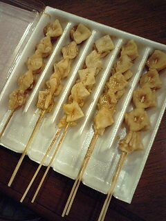 昨日 夫からのお土産野町の神明宮の「あぶりもち」調べたところによると この神明宮は,樹齢1000年の大ケヤキがそびえる前田家の手厚い保護を受けた神社。前田利長が始めたという300年以上続く伝統神事だそうで,食べて身体の災難除けになるというもの。年に2回 春祭(5/15-17)・秋祭(10/15-17)に販売されるのですが一度も食したことがなく コマーシャルやニュースで 放映されるたび「食べてみたいなぁ・・・。」と呟いていたワタシ。春祭りの今月15-17日の販売だったんですが夫はワタシの呟きを覚えててくれたみたいです。あぶりもちっていうと 京都の今宮神社のあぶりもちのイメージ(甘い・丸い・白味噌風味)があったのですがこちらは ちょっと違いました。四角くて薄いお餅で 醤油味(ほんのりショウガ風味?と夫)四角いのは御幣に見立てているからなんですね。10本で1400円也。夫が買ったのが 仕事終わってからだっただけに 餅が固くなっていて たいへん噛みごたえのある固さ。顎が鍛えられそう。焼きたてっておいしいんだろーな と思いながら (え?こういうものに おいしさを期待しちゃいけない?)ありがたく いただきました餅好きの三女は 夕食後にもかかわらず ガッツリ3本食べちゃってました。玄関の高いところに飾るタイプや お守り付あぶり餅もあるらしいです。夫は 金沢検定中級受験対策用に さっそく包み紙を 保管していました。 レポート大募集★5月新商品を食べて、おいしいスイーツをゲット! ←参加中