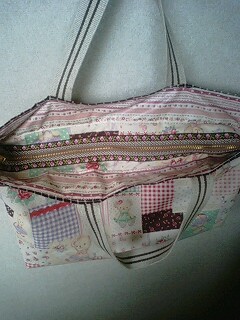 去年 「ハンドメイドのお店ファブリックス」さんからおまけでいただいた 伊藤尚美さんのダブルガーゼ生地 2枚。どちらも40cm程ずつありまして。生地の可愛らしさとダブルガーゼのよさを生かしたいと思い ずっと温めて?ました。 そこで今日の午前中 三女のグラニーバッグを縫うことに。三女の縫物って 去年の夏ワンピ以来だ・・・・ ごめんよ 三女~。 今日は 夫が仕事で不在だったので集中して サクサクッと縫えました。 外布と ポケットをつけた内布の底をそれぞれ縫ってから外表に合わせて バイアス布でくるんだだけなので とっても簡単 こんなふうに リバーシブルにもなります 大きさ;タテ20cm(持ち手含まず)ヨコ24cm 完成品を「これワタシのなの?」と笑顔で 受け取った三女。 「おかあしゃん ありがとっ うれしい」 ←なんて素直で可愛い♪(←親バカ)と 午後からの買い物にも肌身離さず持っていました。 ところが(っていうのが我が家のパターンなんですが)この生地 次女が狙っていたものらしく 喜ぶ三女を横目にしょげる次女。しまいには 部屋に閉じこもっちゃって・・・・ 今度は次女のだね このまえ買ったピスネーム。(おまけで1枚いただいて 使ってみると格好よくなったので)