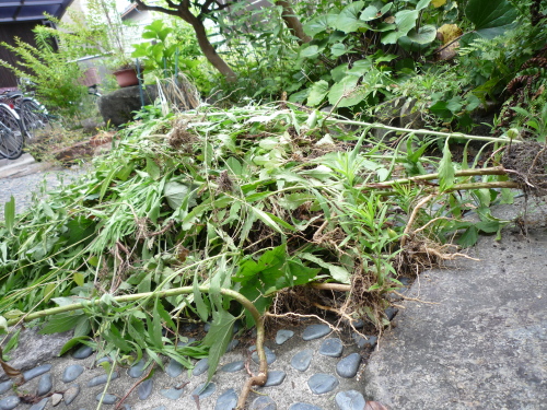 昨日 雨が小降りになったのをきっかけに 雑草抜きをしました アレルギーアトピーが あるのでこまめに庭に入ることを拒んでいましたが 雑草の逞しいこと! 低木より背が高くなりそうになり 焦りました 雨で地面が柔らかくなった時に ずっぽずっぽ抜こうと 今朝は 集中強風豪雨 ああ~~~~気持ちよく 大量に抜けましたア 小雨だったけど 植木の濡れた木の葉とかで 濡れました グッショリ 抜いた雑草は3~4日そのままに天日乾しして嵩が減ったらゴミにだします 夏の間は 雑草との戦いです そして 作業後の鼻のグジュグジュとかゆみの身体メンテ あと 厳しい日差し