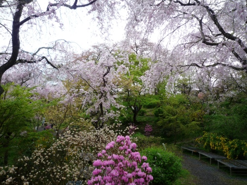 てくてく歩く会有志で お花見日帰りバスツアー参加 14・5年前に 前の仕事仲間から「原谷園」の素晴らしさを 聞かされていて 毎年 桜の季節には思い出していました 仁和寺の枝垂れさくらを観て 食事をし 原谷園には タクシー移動 時刻が4時を過ぎていたので 人出が 引いてきたところでした