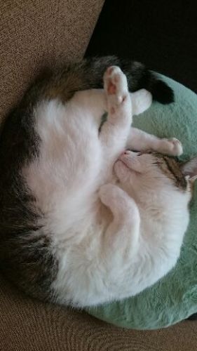 まだ日中の 暑さは かなわないです 体調を維持するのが 大変”” 夕方になると ヒンヤリ み~も 暖かいクッションでお昼寝