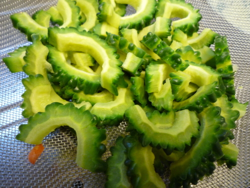 さくらマイスターの家庭菜園から 白いゴーヤーをいただきました ほんとうに 白いンや! みどりのより苦みが少ないとか・・・・。 わたも種も食べることができると聞いて 輪切りで エリンギイと炒め蒸ししてみました ほんの~り苦くて わたもトロ~リ 種は少しカリッと おいしい!! ごちそうさま m(_ _)m