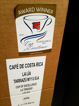 秋の深まりと共に、高品質の中米産新豆コーヒーが入荷してきます。こちらは6月にオークションが開催され入荷したカップ・オブ・エクセレンス、コスタリカコーヒー生豆の30kg入りカートンです。 先月のパナマ・エスラルダ農園ゲイシャ種、ホンジュラスCOEに続いてこの後もグアテマラCOE、メキシコCOEと入荷が続きます。ネットオークションは知名度と認証ブランドから、どうしても高価になってしまうのが常です。弊社は価格だけに拘らず、コーヒーが本来持つ口に含んだ時の美味しさを追求、研究しそれを皆様に提供することを使命と考えています。 バックNo.404:珈琲場面オンとオフ(↓スクロールしてネ) ◆金曜日限定で開場コーヒー市場、次回24日(金)13~17時 ◆Twitterはこちら”@sunny_friday_ ”是非フォローして下さい。 ■サニーフーヅオンラインショッピング■ ●コーヒー豆 ●サワー濃縮果汁 ●フルーツ&フレーバーシロップ 人気blogランキングに参加中応援いつも感謝です^^♪