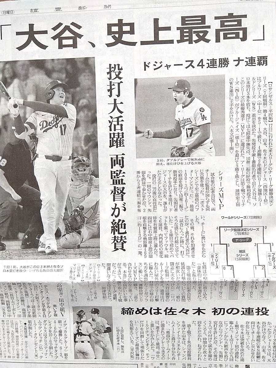 国内政治は先行き不透明で混とんとしてるが、勝負の世界は明確だ。政治も数字で優劣がわかればはっきりするのだが、見えないだけに不安が付きまとう。世界で話題の日本人たち、昨日のロンドンに続いてロサンゼルスの米大リーグである。ポストシーズン打率0.56と1割にも満たず絶不調だった大谷選手が大活躍しMVPを獲得、ワールドシリーズ出場を決定した。160㎞以上の速球を投げ10奪三振、ホームラン3本の二刀流には脱帽です。 ■サニーフーヅオンラインショッピング■ ●コーヒー豆 ●サワー濃縮果汁 ●フルーツ&フレーバーシロップ 人気blogランキングに参加中応援いつも感謝です^^♪