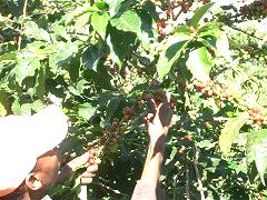 赤く生ってるのがコーヒーの実チェリー、そしてラミレス農園のオーナーMr.Eddy Ramirez。昨秋来日した こちら がその時のツーショット。