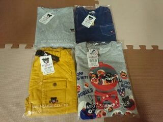 キャンディベアさんで再販があった時にポチっていたのが届きました。うーん、ビミョー。エブダブ2枚パターンでした。(涙)まぁボーダーでなかったからいいのかなぁ。ワッフルはグレーがいいなと思っていたし、カプセルトレーナーは狙っていたので嬉しいです。(アフロは息子には似合わないので。)パンツはカラシより紺の迷彩ぽいのがよかったなあ。不満はありますが、例年の一万円福袋よりよっぽどいい内容でした。130も別のお店でポチっているので、届いたらネタバレします。パンツ2本かフリース入りがいいなぁ。今日はメゾピアノの一万円福袋も届きました。こちらは中身公開してるので写真取りませんでしたが、チェックのキュロットがすごい安っぽいけど、他は綿率高いしよかったです。ロンT2枚じゃなくて、1枚は薄いけどトレーナーなのもいいです。今のところ女の子➡メゾピアノ一万円男の子➡ダブルB一万円が私的に一番満足度高いかな?男の子はdaddy一万円のアウターが思ったより良くなくて、来年はパンツが無地デニムならもう一万円も五千円もやめようかな?という気分です。