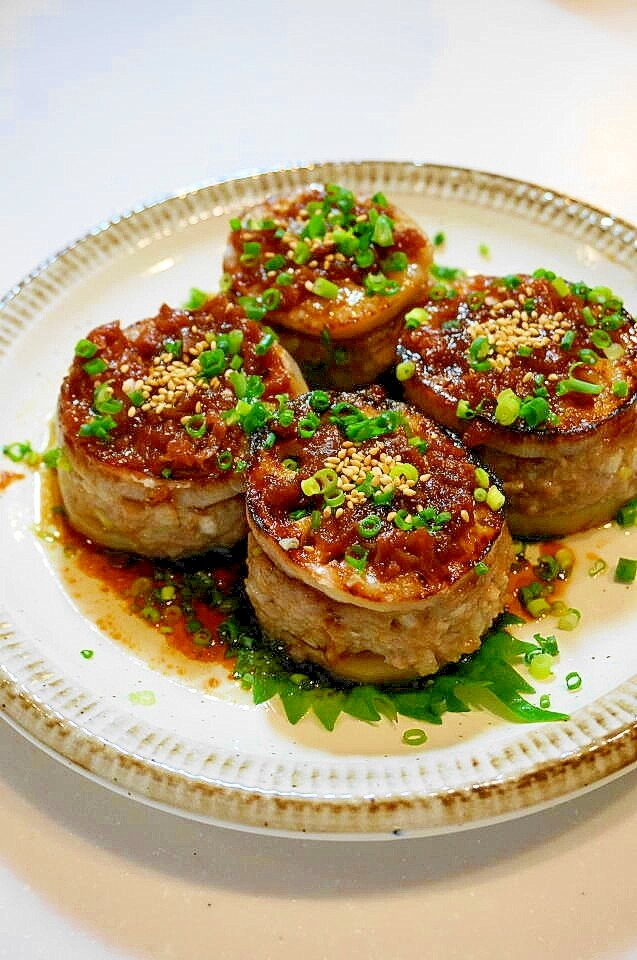 シャキ蓮根&旨味凝縮つくね!レンコンのはさみ焼き料理名:レンコンのはさみ焼き作者: oppeke22■材料(2~3人分)レンコン / 250g酢 / 少々片栗粉(まぶし用) / 適量サラダ油 / 大さじ1豚ひき肉 / 200g長ネギ / 1/2本片栗粉(たね用) / 大さじ1塩 / ふたつまみ酒(蒸し煮用) / 大さじ2★酒・みりん・醤油 / 各大さじ1★梅干し / 2個青ネギ・白いり胡麻 / 各少々■レシピを考えた人のコメント旨味凝縮した肉種をシャキシャキの蓮根で挟み、梅ソースをかけた挟み焼き~白飯にもお酒にも合います。詳細を楽天レシピで見る→