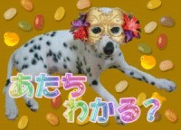 サイト名を変更しました。★きよしとふじこの部屋★ERIKAさん がバナーを作ってくださいました! ↓ ↓ 本来ならコチラからご連絡にお伺いするべきなのですが、リンクしてくださってる皆様、お手数ですがサイト名の変更、バナーの変更をお願いいたしますm(__)m変更してくださったみなさま、ありがとうございます。昨日の日記で紹介しました「仮面舞踏会」かわいかったでしょ~(^_-)-☆ちー8さん が、またまた素敵なモノを作ってくださいました(#^.^#)これは・・・笑えますよ(^^ゞ昨日、朝の散歩から帰ってきて家に着いたら家の外にまでふじこの鳴き声がしていました。私の脳裏に悪い予感が・・・ふじこ起きる→ウ@チ→ウロウロする→ウ@チまみれ!!!そしてその予感は的中!!家に入った瞬間から異臭が・・・(ToT)/~~~きよしの足を速攻で拭いて二階に上がると本当にウ@チまみれ・・・のふじこがいました。ちゃんとシーツにしているのですが、そこからウロウロしまくって、ハウス中、更に部屋にも飛び散って・・・すごい事になってました。タオルケット、ブランケット、バスタオルなどなど・・・ゴミ箱行きになりました(>__