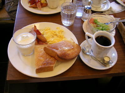 京都でモーニングをいただきましたバターたっぷり バナナ入りのフルーツJクロワッサンサンドも美味しそう~~ さーーーーーーーーーーーーーーーこれから嵯峨嵐山へ嵯峨からトロッコ列車に乗って亀岡まで (25分くらいかな)そこから バス移動して 乗船場までトロッコ列車は途中で止まったり 車掌さんが歌歌ったり列車は河からはこんな感じで見られ ↓列車からは ↓ お互いこれでもか~~~ってくらいに手を振っちゃって この時期は水かさ少ないから流れもそんになくって・・・なんだか 睡魔が・・・ってときに売店がやってきたみたらしだんごで お腹満たしイか焼き にビールもいいんじゃあない(うちらはパス)河に橋がかかってて JR線が通っていくのも風情あり何個かかってるかーーーー??? 正解は6個です 初めてのトロッコ列車&保津川下りでした船の所要時間は1時間半~2時間・・・水かさあったら1時間もありらしい途中 トロッコ列車は保津峡駅で降りて 散策もできますよ 渡月橋あたりで船を降り 金閣寺へ外人さんは大好きです2年前よりも色合いが落ちついた感じいつ行っても 見てもいいです金閣寺庭園内で一休み~~