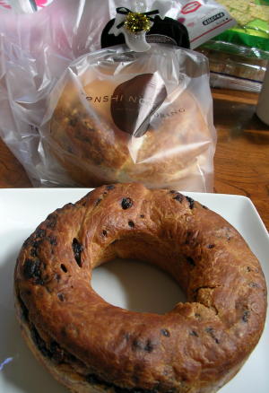 前々から気にはなってたでもいっつも行列で~~・・・・並んでまでもだったらいらんわだったんだけど・・・先日機内で発見ANAとのコラボ?和栗のチョコリングと合算で¥4000え~~~~ 天使のチョコリングだけだったら¥500なんだけど・・・たっかいなーーーーで、まずは¥500のから食べなきゃあ~~で今日 そんなに並んでなかったから 購入 直径18cm 360g カットして 早速パクリフランスパンの中にチョコ&くるみオーブントースターで温めると チョコがとろけ美味しいみたいでも・・・あんまいなーーーーだからスイーツの仲間にネーミングがいいよね0さんは ドーナッツかい?って思ってるようだからあとでビックリするよ愛知県生まれなんですが・・・・Mokaちゃんご存知?
