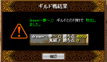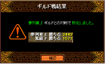 今日もギルメンにGV入れをお願いしてしまった・・・。おかげで少し長く寝れました!ありがとう(ゝω・)v幸せの国ネズミーランド様とGVがありました。結果うーん。。。悔しい!対戦ありがとうございました!今回の反省は鬼組のギルドメンバーに失礼を承知で書きます。人数、職バランス、霊術の数では正直勝っていたと思うんですよね。現に前半ガンガン押してましたしねー。ところが途中からお相手の悪魔さんにこっちの裏切り入るメンバーを見定められどんどん裏切り入れられましたね。私も1回入ってしまいました。(なのであんまり人のこと言えないのかもしれませんが)お相手の悪魔さんが裏切り入れるのがすごい上手かったとは思うんですけどいくらなんでも入りすぎと言わざるを得なかったです。まぁこの頃連勝していたのでいい薬にもなったんじゃないかなぁ。ただ裏切りに関しては個人レベルでの対策になるので個々でがんばってもらうしかないかな~。おしまい