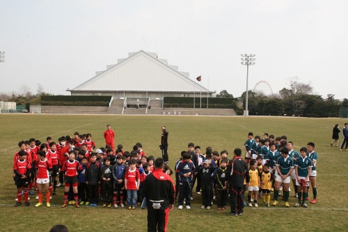 皆さんこんばんは 3/16(日)に行いました2013年度 鈴鹿RS卒業試合と アフターファンクションの様子、修了式の内容をUpします。 (今回のブログUpは5回にわけて行います) 最高の天候に恵まれ、卒業試合&終了式を行う事が出来ました。 しかもグラウンドはHondaHEATさんの御好意でHondaアクティブランドの 天然芝Gをお借りする事が出来ました。 HondaHEAT関係者様に感謝申し上げます。 まず今回は津・高虎RSさんとの、C・Bグレード卒業試合内容です。 それではいってみましょう! ・まずは基本の挨拶から! ・忘れちゃいけないDグレードの生徒達! 大きな声で上級生生徒の皆を応援してくれました。 《Cグレードいよいよ試合開始!》 《先制TRYに向けて走る!》 《走り方がCグレードとは思えませんね!》 《ハーフタイムでのベストショット!》 《後半戦開始、しっかりマンマーク!》 《後半も勢いが止まりません!》 《ノーサイド! しっかり相手チーム側に挨拶》 Cグレードの生徒達1年間お疲れ様! 2年生は4月よりBグレード、Dグレードの年長さんは いよいよCグレードに上がります。 これからも頑張れ~♪♪ 《続いてはBグレード、試合前気合いの円陣から!》 《マイボールからキックオフ!!》 《激しい攻防が繰り広げられました!》 《モールでの攻防!》 《前半は津・高虎RSさんのディフェンスに攻め手を欠きました…》 《ハーフタイム! 気持ちを切替えます!》 《反撃開始!》 《自陣から全員で繋ぎます!》 《最後はBグレードキャプテンが意地のTRY!》 《ノーサイド! 最後の挨拶きっちりと!》 ・Bグレード生徒の皆へ 1年間お疲れ様! 日曜日の結果は残念でしたが、 最後の自陣からのアタック、諦めない心が出ていました。 4年生は4月からいよいよAグレードです。 これからも『勇気』『集中』で頑張ろう!
