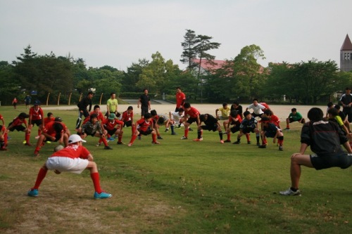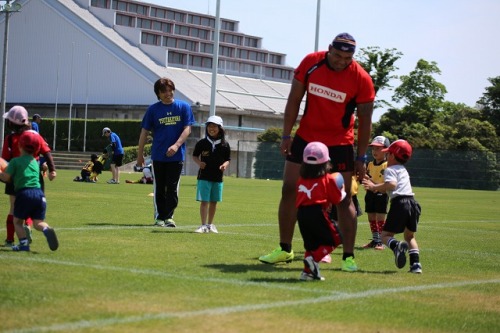 昨日、津高虎RSさんをお迎えして今年度初の合同練習をおこないました。合同練習といいましても、ラグビー大好きキッズが集まり練習するとなれば・・・それはもう、ゲームですよね!?交流戦をおこないました。鈴鹿RS新しくなったグレードメンバーと自分たちの力だめし!!どのグレードも鈴鹿魂全開で挑みました。その模様をご覧ください。その前に・・・≪Dグレード≫津高虎RSさんのDキッズと共に楽しく練習をおこないました。そして、キッズたちには嬉しい出来事が!!HondaHEATタカウ選手が練習に参加してくださいました。タカウ選手が練習に参加してくれた瞬間、Dキッズのテンションはマックスでした!!タカウ選手ありがとうございました。≪Cグレード≫6人の1年生が試合デビュー!!緊張と恐怖心で表情が固い子、闘志をメラメラと燃やしている子それぞれが一生懸命ボールを追いかける姿はとても微笑ましいものでした。2年生は1年生を引っ張るべく体を張ったプレーを見せてくれました。≪Bグレード≫1年前に共に戦っていた仲間との久しぶりにプレーする彼ら互いに成長した姿をみてどう感じたかな??互いの成長と共に戦える喜びを感じながらプレーしてする姿は伸び伸びしていました。≪Aグレード≫偉大な先輩たちが抜け、新しい仲間と、1年前に共に戦った仲間でなるAグレード先輩たちが残してくれた鈴鹿魂を受け継ぎ、自分たちのカラーを探すべくひたむきに試合に取り組んでくれました。また、あどけない表情の彼らが今年度を通してどのように成長してくれるか鈴鹿RSミニグレードを引っ張っていってくれるか楽しみです。どのグレードも今の実力を十分に発揮してくれたのではないでしょうか?熊野カップでは今できる全てをだし仲間と一丸となって戦いましょう!!最後に津高虎RS関係者のみなさま新体制となって初の交流戦、胸を貸していただきありがとうございました。今後ともよろしくお願いします。